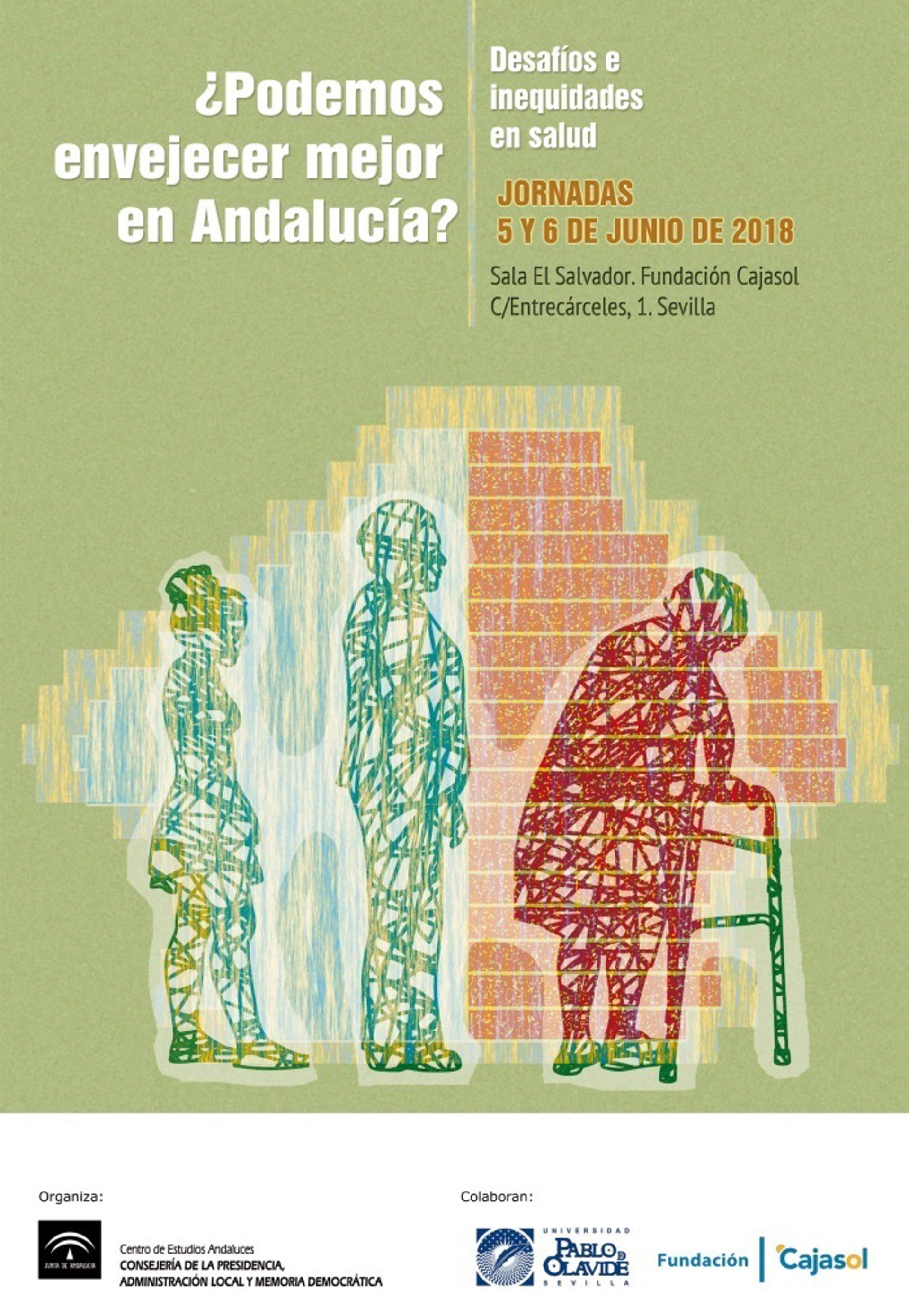 El Centro de Estudios Andaluces, en colaboración con la Universidad Pablo de Olavide (UPO), organiza los días 5 y 6 de junio las Jornadas '¿Podemos envejecer mejor en Andalucía? Desafíos e inequidades en salud' para ofrecer una panorámica de este fenómeno y tratar de aportar soluciones multidisciplinares, tanto desde el plano social como económico, ante el que se considera como uno de los mayores retos de la sociedad actual.