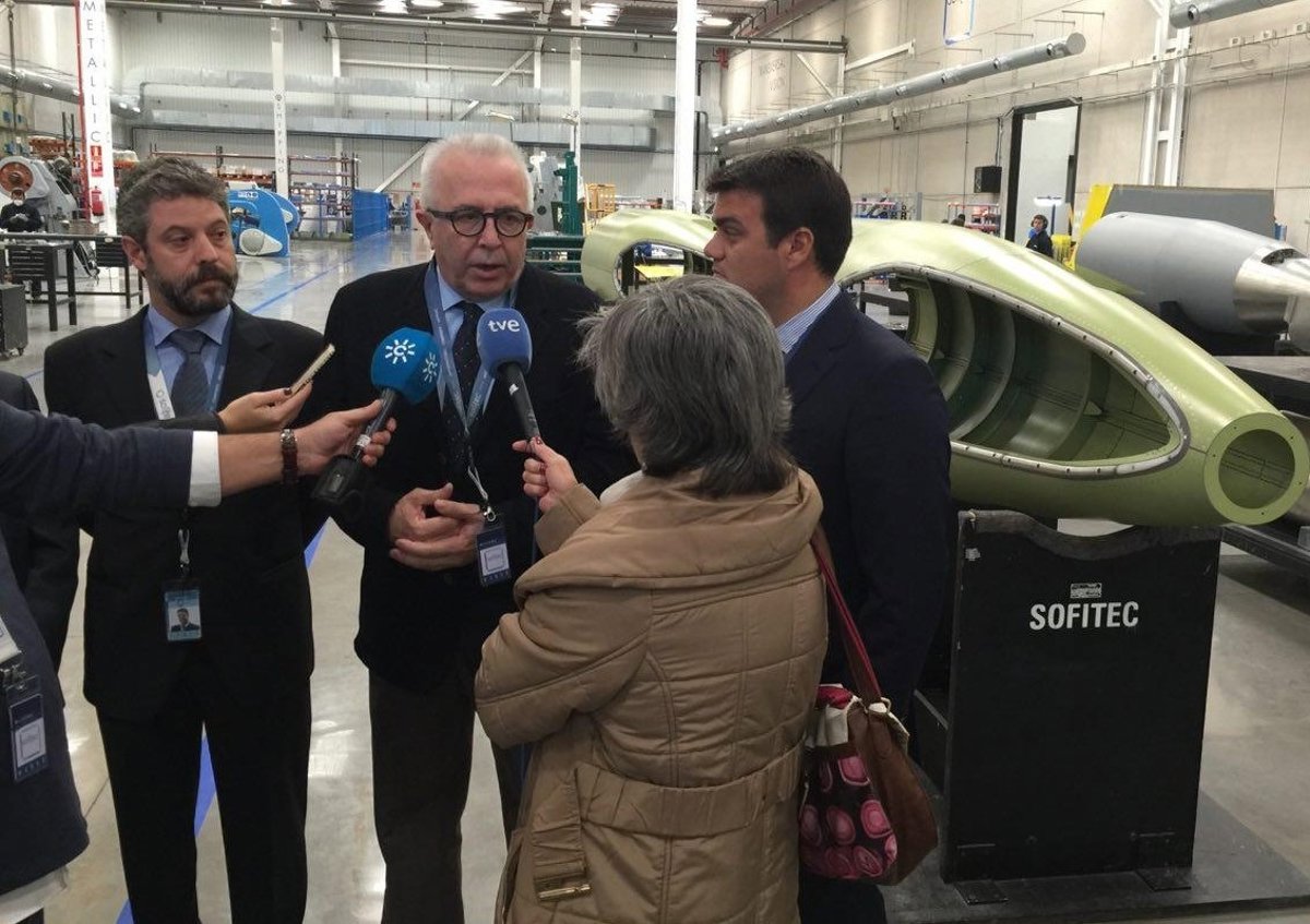 El consejero de Empleo, Empresa y Comercio ha destacado la importancia de esta empresa en el sector, firma que "está dando pasos sólidos y se está consolidando como una de las grandes empresas aeronáuticas, no sólo de Andalucía, sino del conjunto de España, especialmente en el desarrollo de soluciones integrales de fabricación, aeroestructuras y reparación de materiales para esta industria".