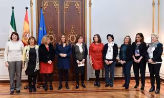 La presidenta de la Junta, Susana Díaz, ha recibido en San Telmo a los representantes de la Confederación Andaluza de Federaciones de Familiares de Enfermos de Alzheimer y Otras Demencias, encabezados por su presidenta, Rocío Muñoz.