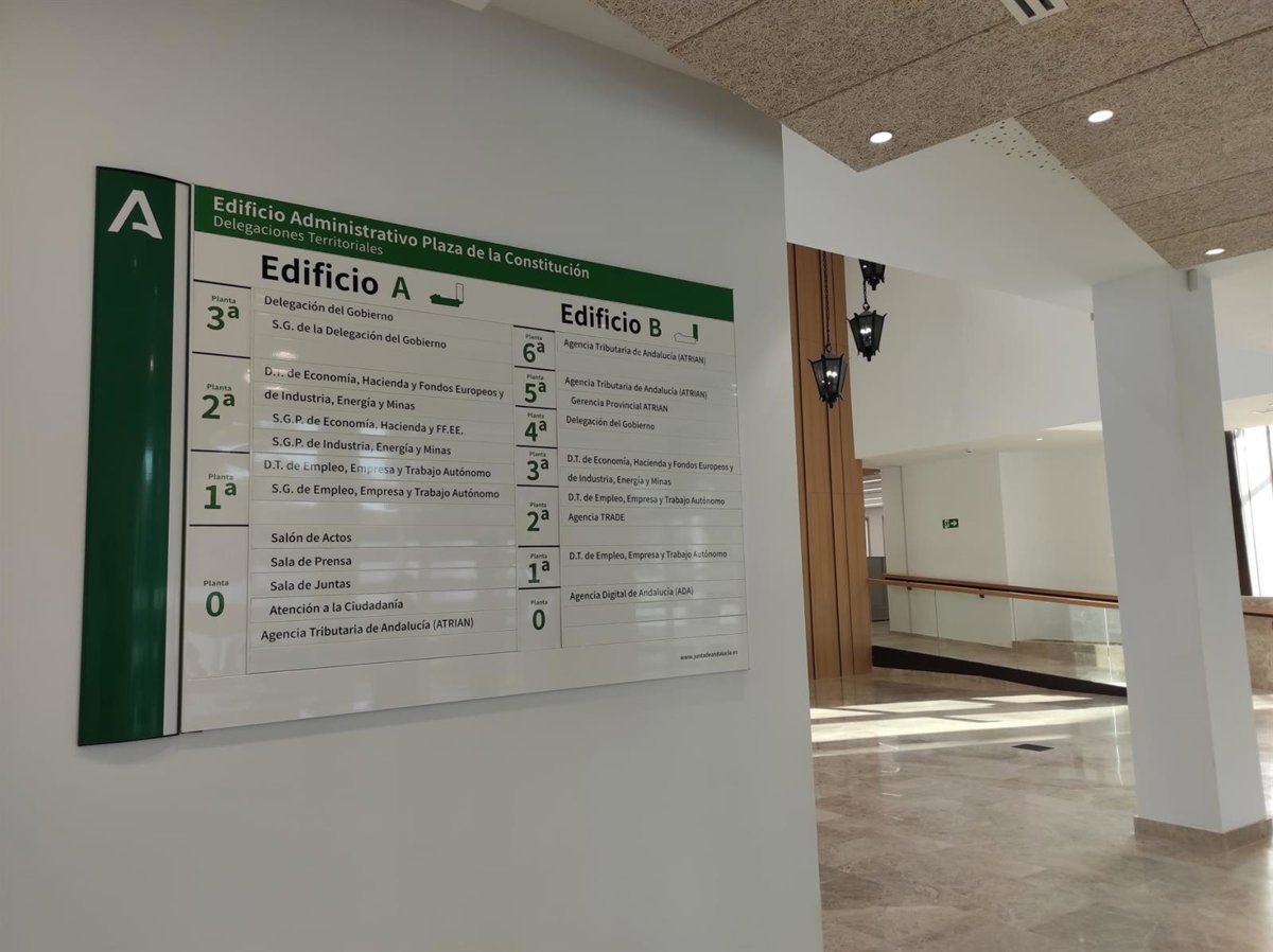 Panel informativo de un edificio administrativo de la Junta de Andalucía. - EUROPA PRESS