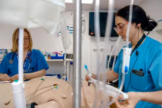 "Todo ello, que recrea, dentro de una sala de simulación, las condiciones de la sala de Emergencias del Hospital de Rehabilitación y Traumatología. Además, disponen de un software de tramas de videojuegos para diseñar los casos clínicos con elección que se analizan en la sección del curso, desarrollado bajo la técnica docente de aprendizaje basado en problemas.