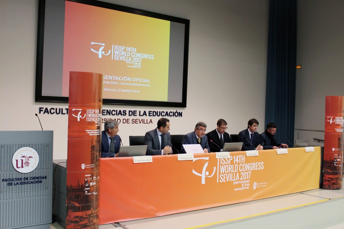 La presentación de este encuentro ha contado con la presencia de los decanos de las Facultades de Ciencias de la Educación y de Psicología de la Universidad de Sevilla, Juan de Pablos Pons y Francisco José Medina, respectivamente; el secretario general de la ISSP, Alex García Mas; el presidente del Congreso y profesor de la Universidad Pablo de Olavide, José Carlos Jaenes; el secretario general para el Deporte de la junta de Andalucía, Antonio Fernández; y el delegado de deportes del Ayuntamiento de Sevilla, David Guevara.