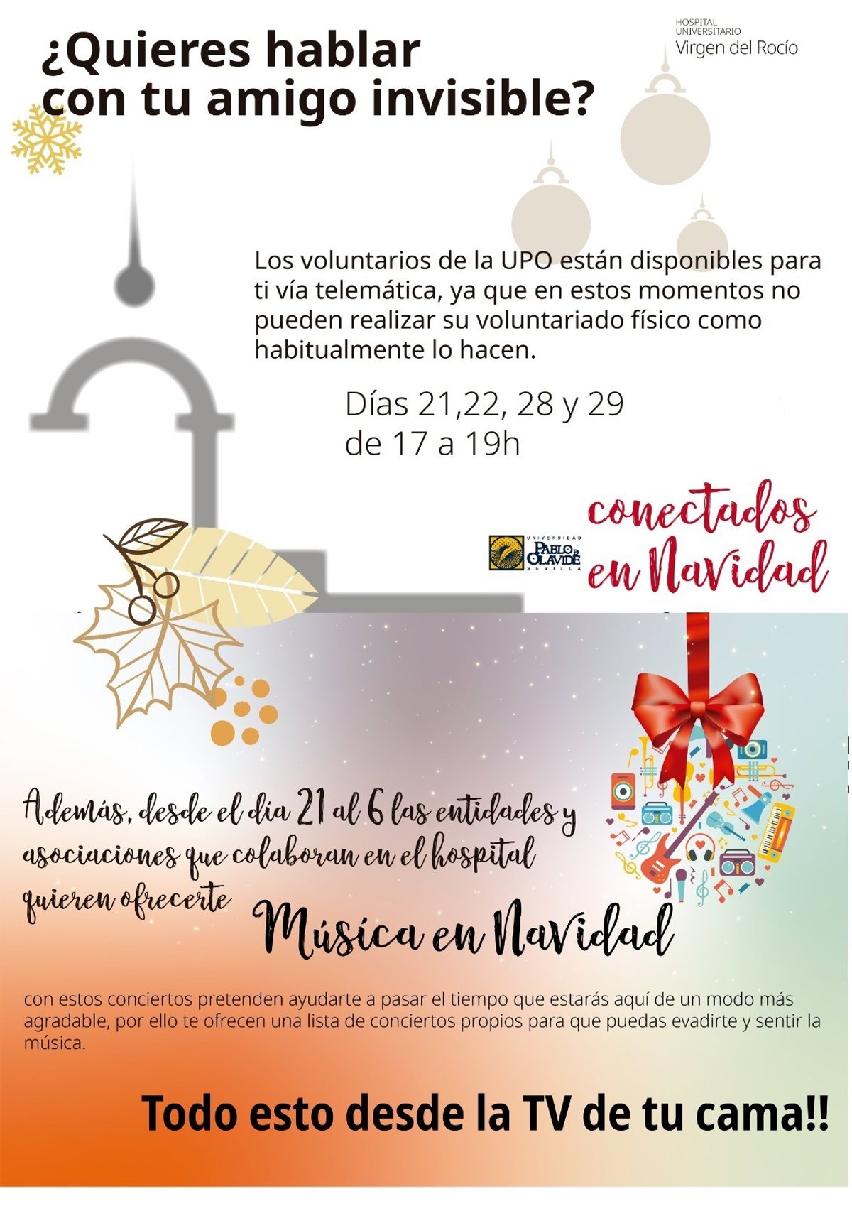 amigo invisible. En este caso serán los voluntarios de la Universidad Pablo de Olavide (UPO) quienes los acompañen en videollamadas, en vez de manera presencial, el 21, 22, 28, y
