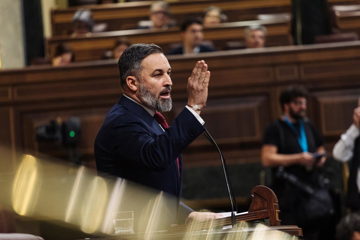 El líder de VOX, Santiago Abascal, interviene durante una sesión plenaria, en el Congreso de los Diputados, a 12 de diciembre de 2023, en Madrid (España). El Pleno del Congreso acoge hoy el primer debate de la proposición de Ley de Amnistía registrada p - Carlos Luján - Europa Press