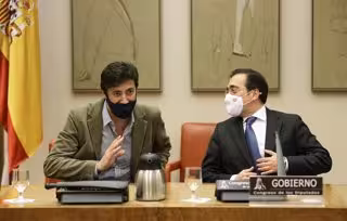 El vicepresidente primero de la Comisión, Antonio Gómez-Reino Varela (i) y el ministro de Asuntos Exteriores, Unión Europea y Cooperación, José Manuel Albares (d), en la Comisión de Asuntos Exteriores para informar en qué consiste exactamente el acuerdo - Eduardo Parra - Europa Press