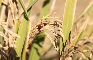 Archivo - Una mariquita posada en unas semillas de arroz en las marismas del Guadalquivir. A 22 de octubre de 2024, en Sevilla (Andalucía, España). Los arroceros de las marismas del Guadalquivir han empezado esta semana su cosecha después de dejar unos d - María José López - Europa Press - Archivo