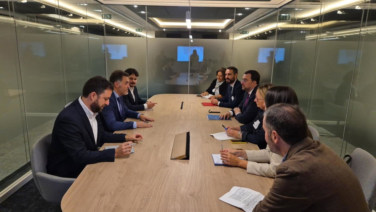 El presidente del Principado, Adrián Barbón, con el equipo del eurodiputado asturiano Jonás Fernández. - PRINCIPADO