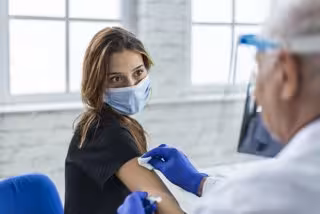 Mujer recibiendo la vacuna de la covid. - ISTOCK