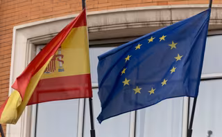 Archivo - Una bandera de la Unión Europea junto a una bandera de España, a 3 de enero de 2024, en Madrid (España). La bandera de la Unión Europea está formada por 12 estrellas amarillas dispuestas en círculo sobre un fondo azul. Las estrellas representa - Eduardo Parra - Europa Press - Archivo