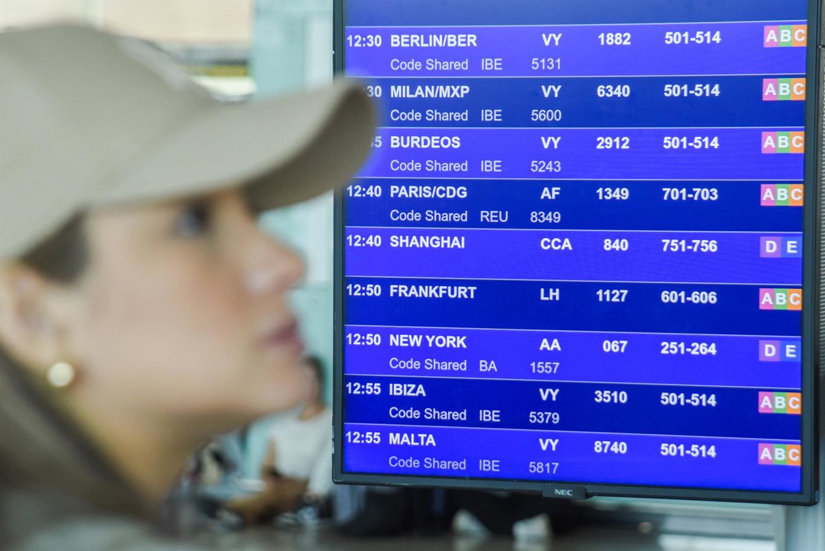 Archivo - Panel de salidas de vuelos durante un acto de inauguración de la ruta directa entre Barcelona-Shanghái, por la aerolínea Air China, en el Aeropuerto Josep Tarradellas Barcelona-El Prat, a 27 de agosto de 2024, en Barcelona, Cataluña (España). B - Alberto Paredes - Europa Press - Archivo
