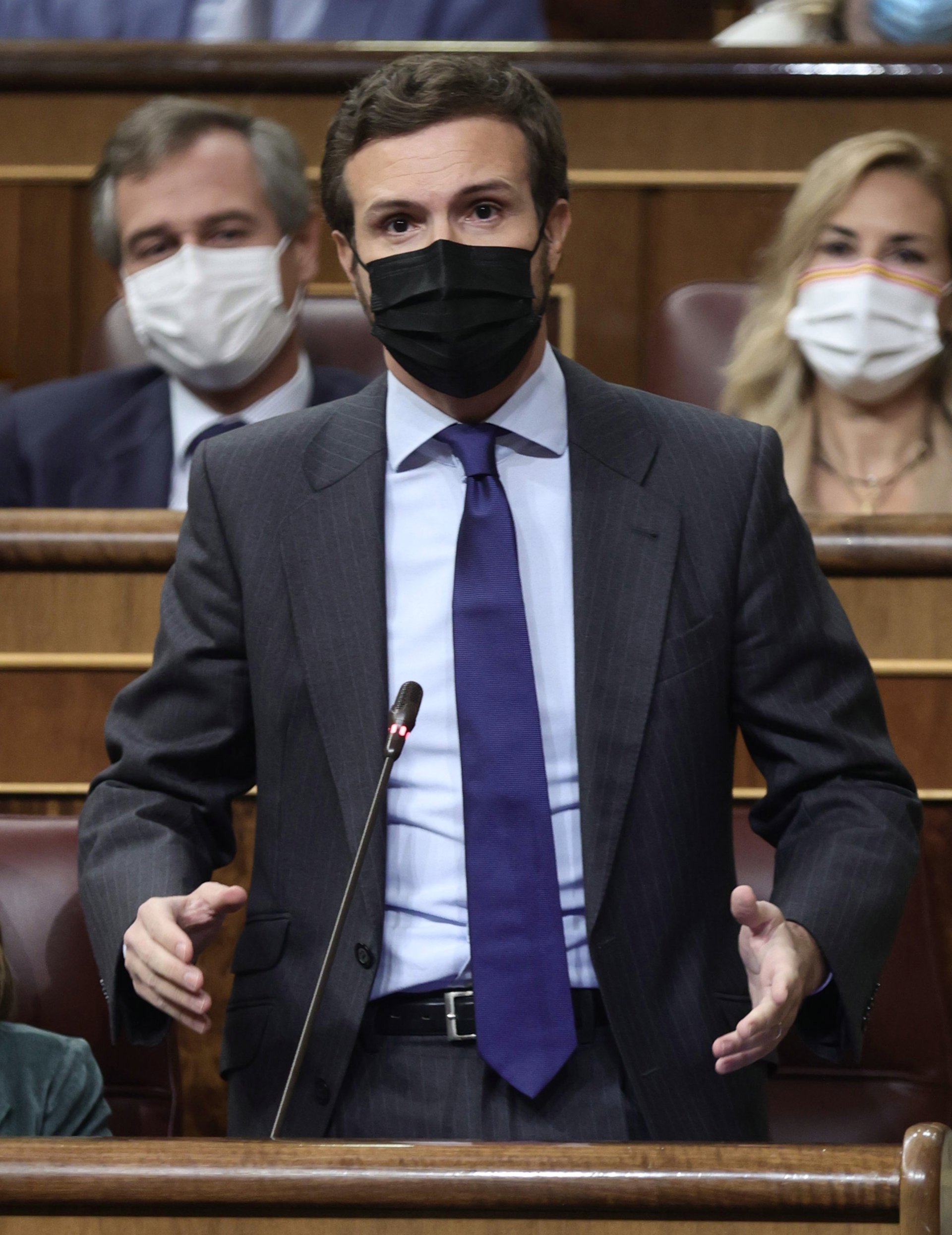 El líder del PP, Pablo Casado, interviene en una sesión de control al Gobierno en el Congreso de los Diputados, a 20 de octubre de 2021, en Madrid, (España). En este pleno, marcado por el reciente décimo aniversario del fin de la banda terrorista ETA, e - Eduardo Parra - Europa Press