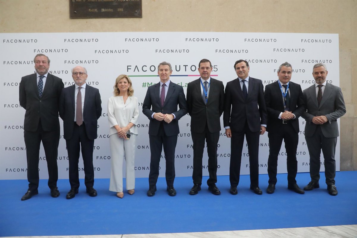 El presidente de Repsol, Antonio Brufau (2i); la presidenta de Faconauto, Marta Blázquez (3i); y el presidente del PP, Alberto Núñez Feijóo (4i); y el presidente de la Asociación Española de Fabricantes de Automóviles y Camiones (ANFAC), Josep María Rec - Rafael Bastante - Europa Press
