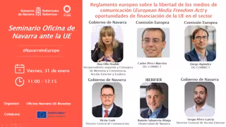 El Departamento de Memoria y Convivencia, Acción Exterior y Euskera del Gobierno de Navarra, a través de su Dirección General de Acción Exterior y la Delegación Permanente en Bruselas, ha organizado un seminario on line para los medios de comunicación navarros en torno a la legislación y las ayudas de la Unión Europea en el que la vicepresidenta Ana Ollo ha resaltado la importancia de "apuntalar la libertad de prensa y el papel de los medios de comunicación como un pilar básico de una Europa fuerte y de una democracia sana".
