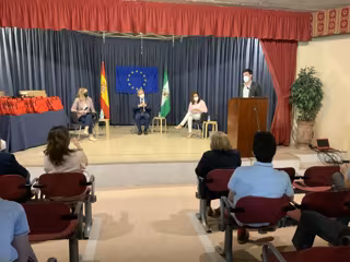 La delegada de Turismo de la Diputación de Córdoba, Inmaculada Silas, ha asistido este martes a la entrega del premio JACE (Jóvenes Andaluces Construyendo Europa), certamen que tiene como objetivo promover el conocimiento de la Unión Europea entre el alumnado y personal docente de los centros educativos de la Comunidad Autónoma de Andalucía, y en el que ha resultado ganador el colegio cordobés Almedina.