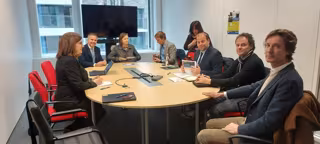 El conseller de Medio Ambiente y Territorio, Miquel Mir, durante una reunión en Bruselas junto a otras autoridades. - CAIB