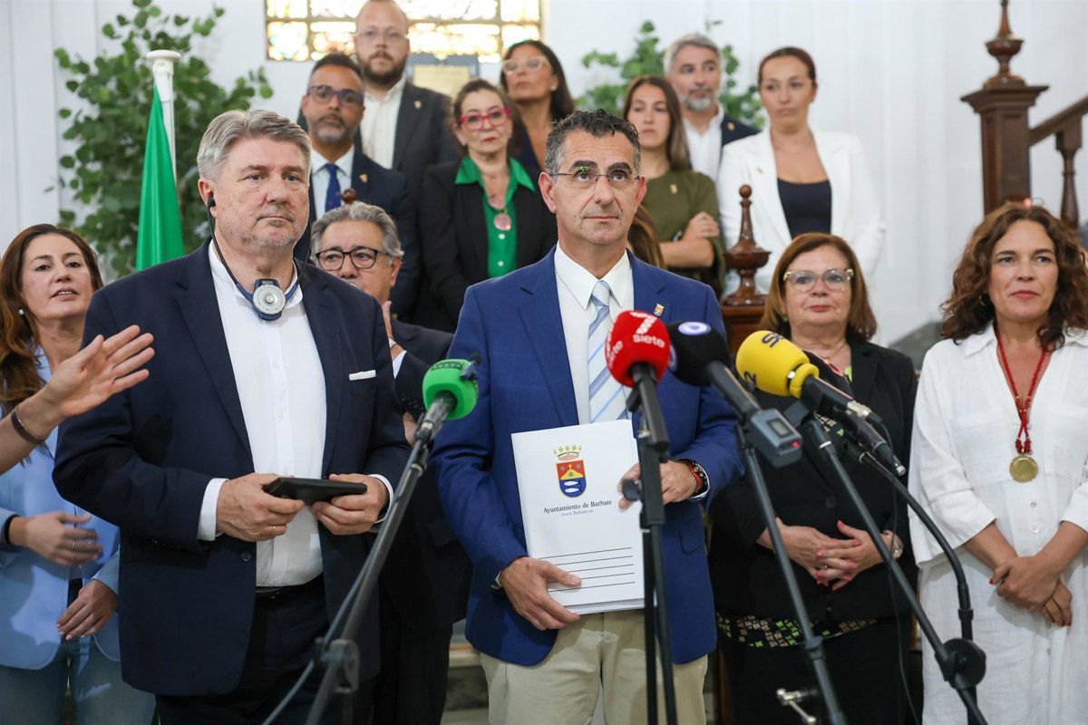 El alcalde de Barbate, Miguel Molina Chamorro atiende a los medios antes del encuentro mantenido en el ayuntamiento de la localidad. A 26 de mayo de 2025 en Barbate, Cádiz (Andalucía, España). El presidente de la delegación del Parlamento Europeo, Bogdan - Nacho Frade - Europa Press