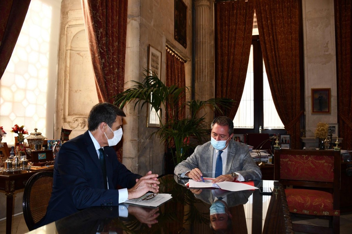 El alcalde de Sevilla, el socialista Juan Espadas, y el delegado del Gobierno en Andalucía, Pedro Fernández, han mantenido un encuentro de trabajo con el objetivo de analizar proyectos que están en marcha en la ciudad y para reforzar la coordinación y cooperación entre administraciones para el desarrollo de las medidas necesarias para la recuperación económica y específicamente para la gestión de los fondos europeos.