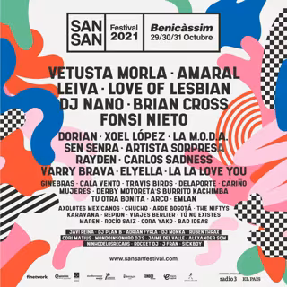 El cartel de la próxima edición del SanSan es uno de los más "ambiciosos y completos" de la nueva temporada de festivales. El viernes 29 de octubre actuarán Vetusta Morla, Amaral, Xoel López, Varry Brava, Brian Cross, Arco, Mujeres, Chucho o Cariño, Karavana, Viajes Berliner, Cora Yako, Bad Ideas, Ninhodelosrecaos, Jaime del Valle o Ruben Thrax.