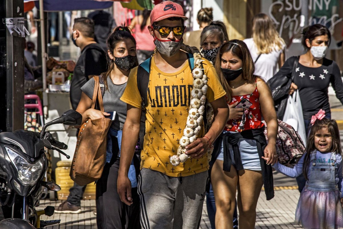 Imagen de archivo de un grupo de transéuntes en una calle de Buenos Aires durante la pandemia. - ROBERTO ALMEIDA AVELEDO / ZUMA PRESS / CONTACTOPHO