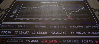 Gráfico en el interior del Palacio de la Bolsa de Madrid, el día en el que el edificio vuelve estar abierto para prensa, en Madrid (España), a 30 de junio de 2020. - Eduardo Parra - Europa Press - Archivo