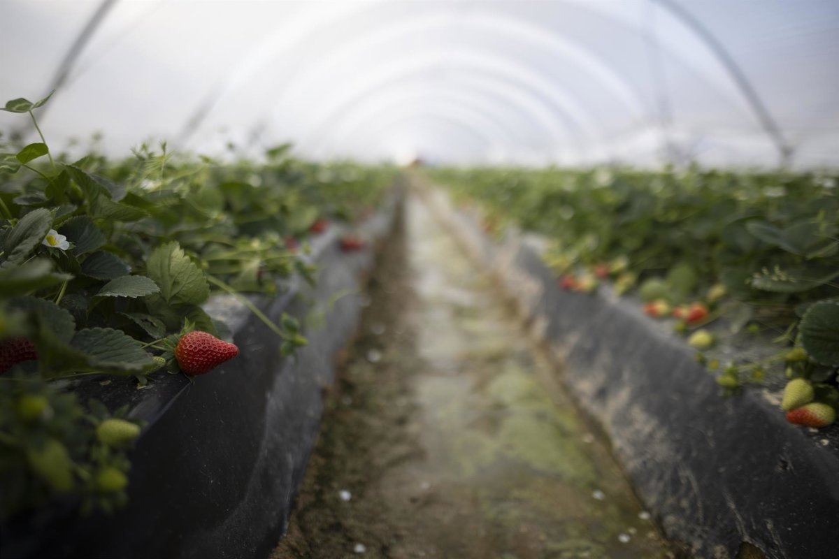Explotación agrícola en Moguer (Huelva) dedicada al cultivo de la fresa afectada por el temporal. A 12 de febrero de 2026 en Moguer, Huelva (Andalucía, España). La sucesión de borrascas atlánticas registradas en los últimos meses en Andalucía está provoca - Clara Carrasco - Europa Press