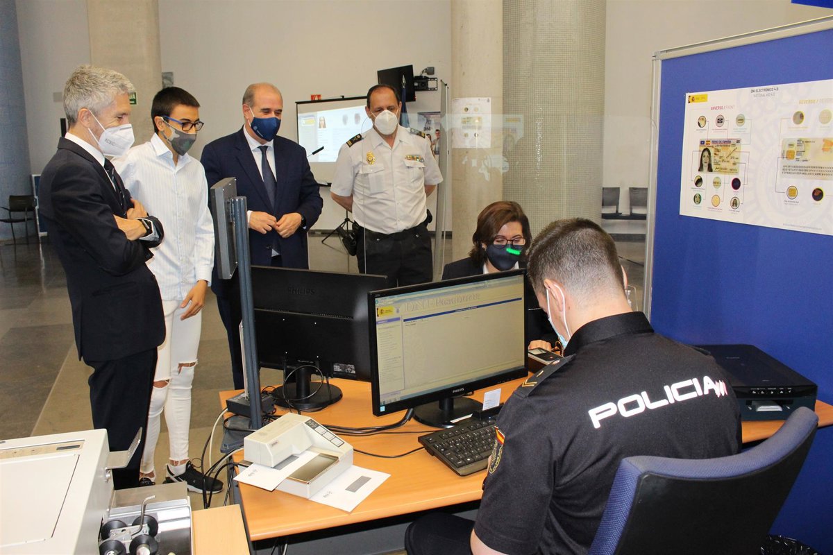 El ministro del Interior, Fernando Grande-Marlaska, ha presentado este miércoles 2 de junio el DNI Europeo, la nueva versión del DNI electrónico, en un acto celebrado en la comisaría de la Policía Nacional de la localidad madrileña de Móstoles, donde ha estado acompañado por el director general de la Policía, Francisco Pardo; la delegada del Gobierno en Madrid, Mercedes González; la alcaldesa de Móstoles, Noelia Posse y el comisario de la Policía Nacional de Móstoles, David Cervera, entre otras autoridades.