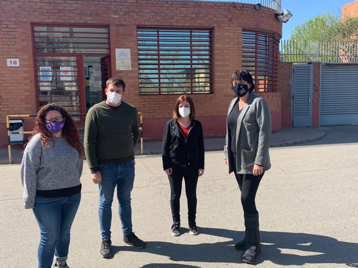 Kenia Domnech, Pau Morales, Sara Bailac y Diana Riba en la puerta del Centro penitenciari de Ponent, en Lleida. - ERC