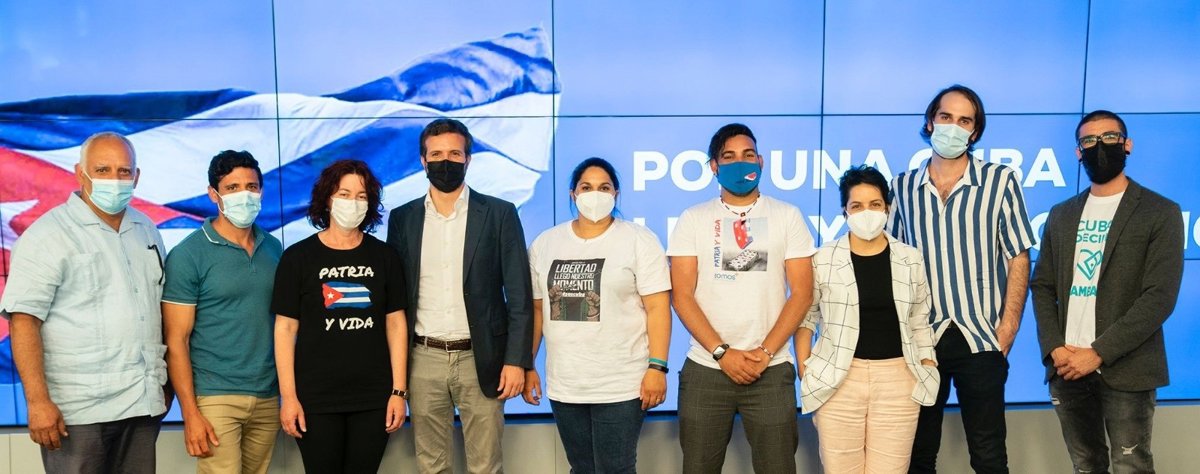 El líder del PP, Pablo Casado, ha asegurado este viernes que su partido pedirá en el Parlamento Europeo recuperar la Posición Común europea sobre Cuba e incrementar las sanciones a los "gerifaltes" castristas. Además, ha criticado que el PSOE haya "vetado" una declaración institucional propuesta por el PP en el Congreso para llamar dictadura al país caribeno.