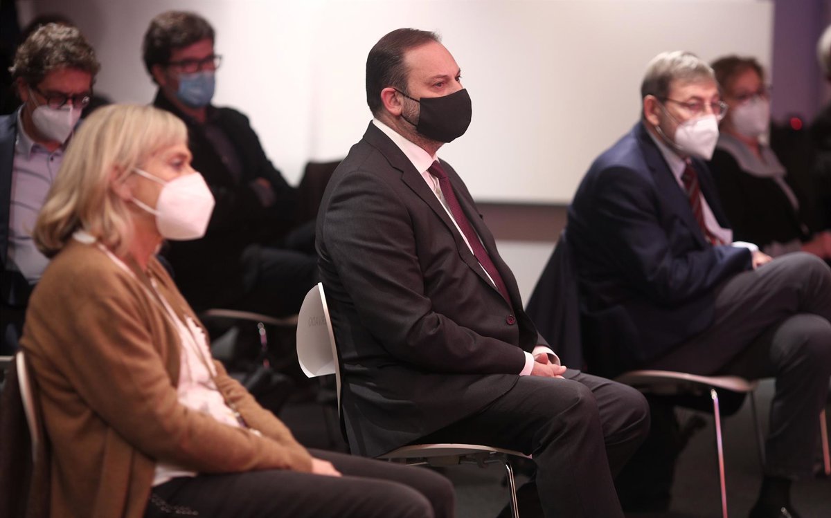 El secretario de Organización y ministro de Transportes, Movilidad y Agenda Urbana, José Luis Ábalos (c), durante la presentación del libro "Rubalcaba. Un político de verdad", de Antonio Caño, en Espacio Bertelsmann, Madrid (España), a 26 de noviembre d - Eduardo Parra - Europa Press