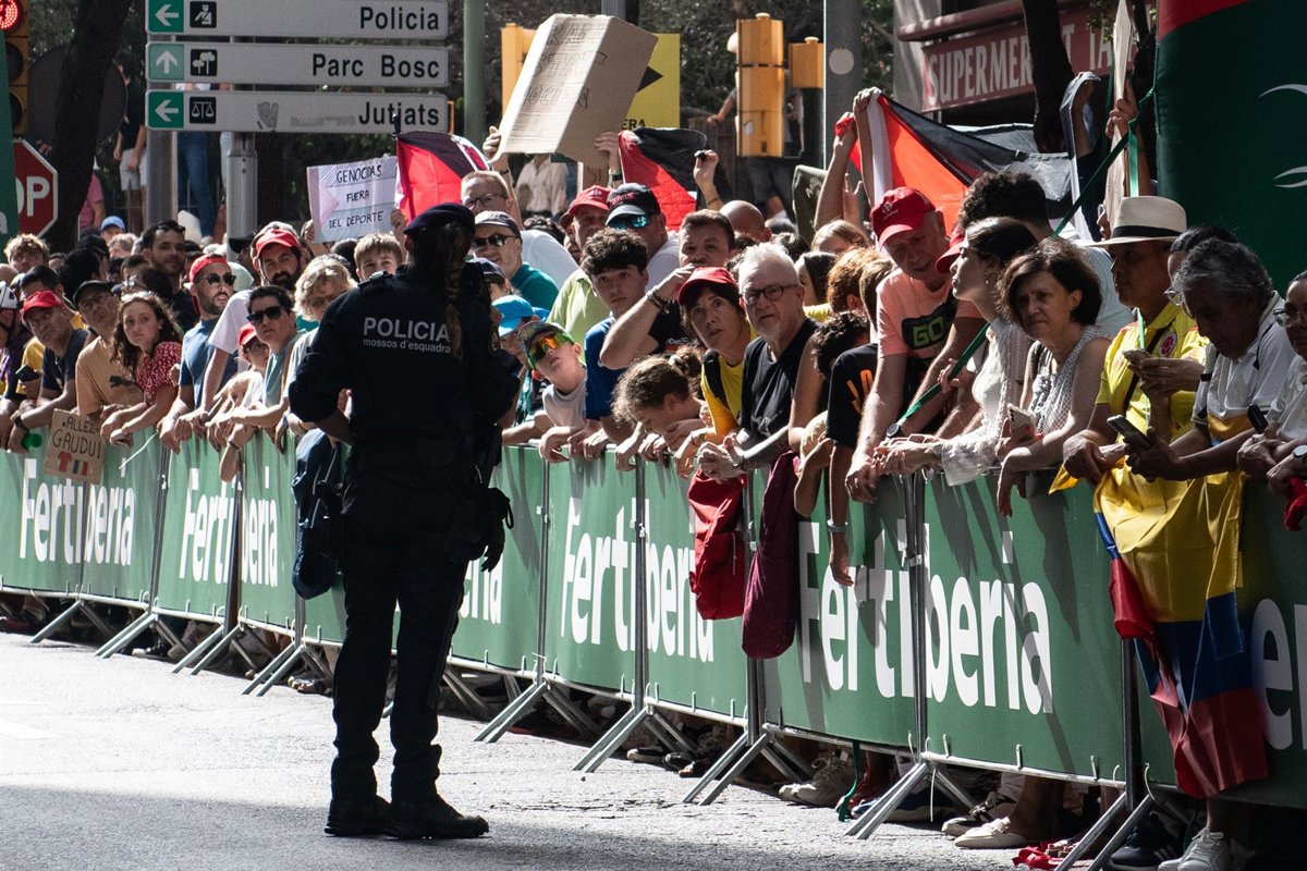 Varias personas protestan contra la participación del equipo ciclista Israel-Premier Tech en la Vuelta a España 2025, a 27 de agosto de 2025, en Figueres, Girona, Catalunya (España). - Glòria Sánchez - Europa Press