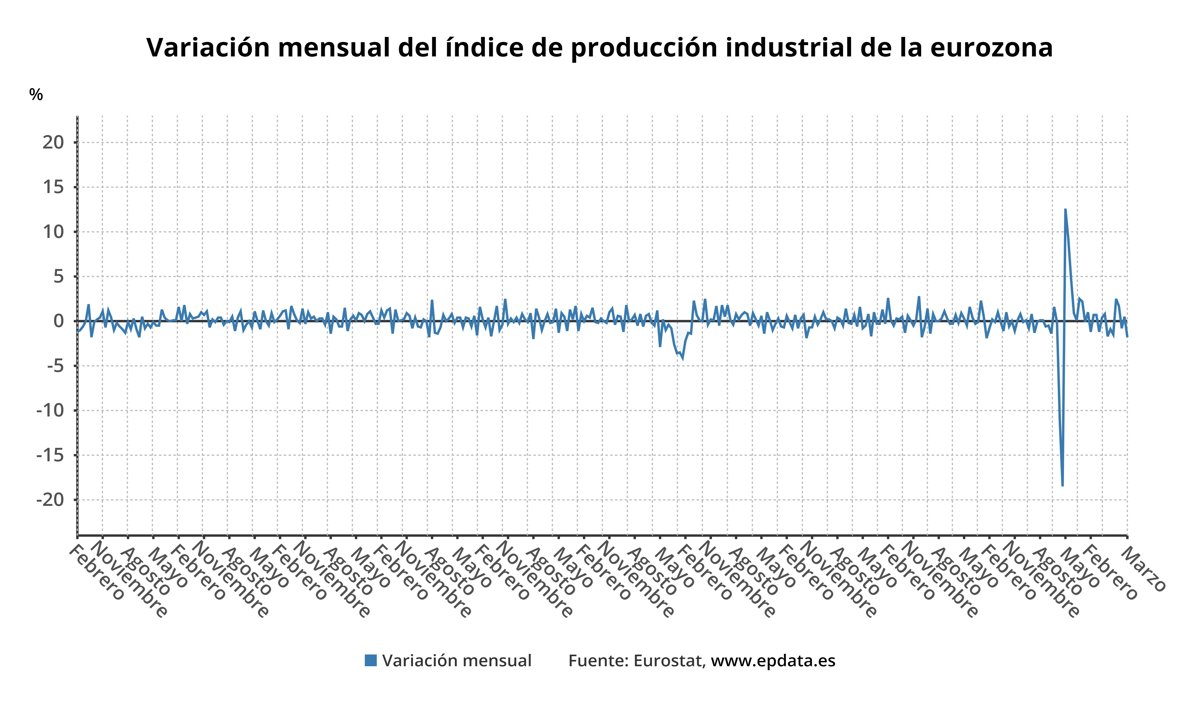 Variación mensual de la producción industrial en la eurozona (Eurostat) - EPDATA