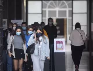 Varios estudiantes en una de las entradas del edificio del Rectorado de la Universidad de Sevilla, durante el inicio del curso universitario. En Sevilla, (Andalucía, España), a 05 de octubre de 2020. - María José López - Europa Press - Archivo