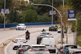 Coches circulan bajo un radar de tramo en la calle Sinesio Delgado, a 15 de septiembre de 2023, en Madrid (España). El Ayuntamiento de Madrid activa a partir de hoy los radares de tramo que han instalado en dos direcciones de la calle de Sinesio Delgado - Eduardo Parra - Europa Press