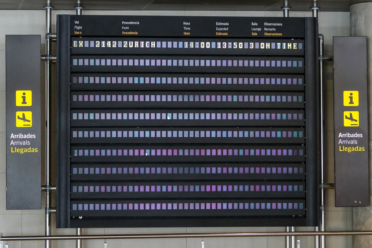 Archivo - Paneles informativos del aeropuerto de Manises donde se pueden ver las indicaciones del único vuelo, procedente de Zurich. Este, es el primer vuelo internacional desde que se decretó el confinamiento por la crisis sanitaria, donde la aeronave - Iván Terrón - Europa Press - Archivo