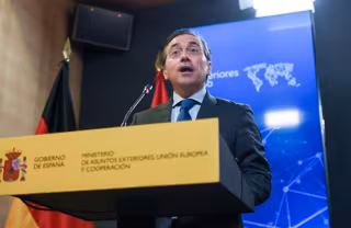 El ministro de Asuntos Exteriores, Unión Europea y Cooperación, José Manuel Albares, durante una rueda de prensa tras una reunión con el ministro Federal de Relaciones Exteriores de Alemania, en el Palacio de Viana, a 26 de mayo de 2025, en Madrid (España - Gustavo Valiente - Europa Press