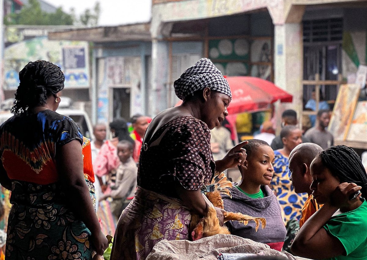 GOMA, Feb. 2, 2025 -- This phone taken with a mobile phone on Feb. 1, 2025 shows vendors selling chicken at a street market in Goma, North Kivu Province, Democratic Republic of the Congo (DRC). TO GO WITH "Roundup: With calm being restored in DRC's Goma, - Europa Press/Contacto/Jia Nan