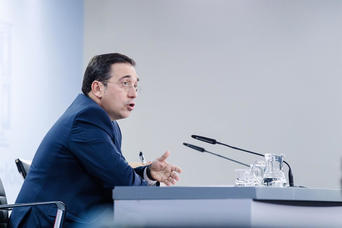 El ministro de Asuntos Exteriores, Unión Europea y Cooperación en funciones, José Manuel Albares, durante una rueda de prensa posterior a la reunión del Consejo de Ministros, en el Palacio de La Moncloa, a 17 de octubre de 2023, en Madrid (España). Dura - Carlos Luján - Europa Press