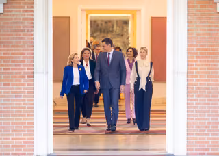 (I-D) En la primera fila, la vicepresidenta primera y ministra de Asuntos Económicos, Nadia Calviño; el presidente del Gobierno, Pedro Sánchez y la vicepresidenta segunda y ministra de Trabajo y Economía Social, Yolanda Díaz, y en la segunda fila, la vi - Eduardo Parra - Europa Press