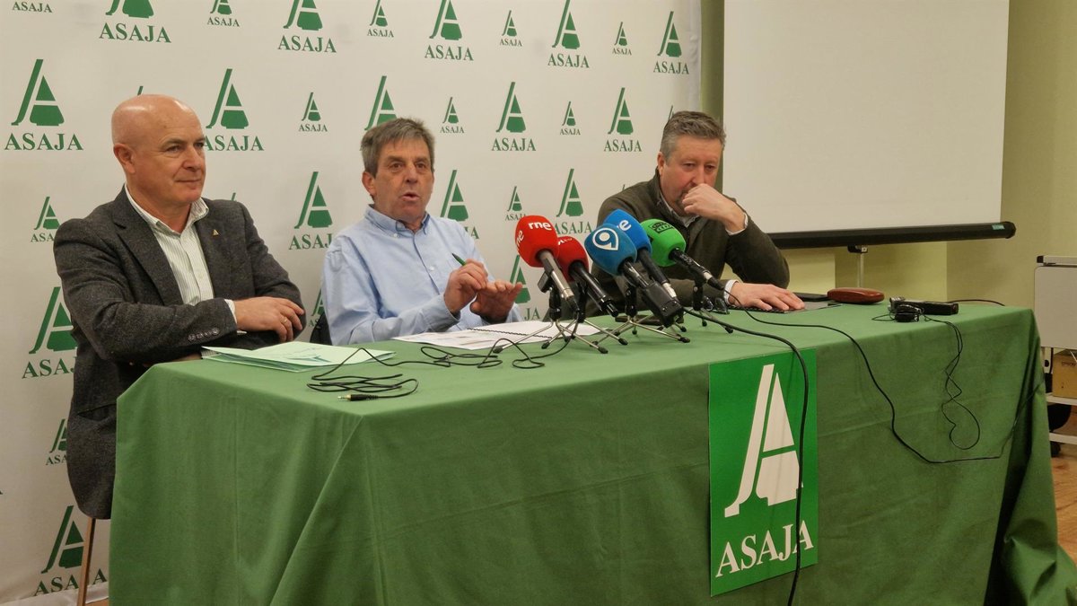 El presidente de Asaja León, Arsenio García Vidal (centro), durante la presentación del informe de Asaja León sobre el sector agroganadero leonés en el año 2025. - EUROPA PRESS