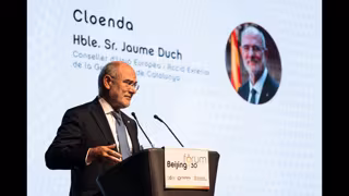El conseller de Unión Europea y Acción Exterior de la Generalitat, Jaume Duch, en la clausura del Fòrum Beijing+30. - GOVERN