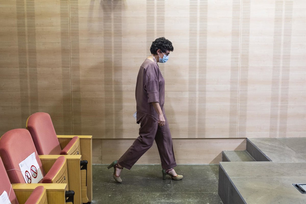 La Ministra de Exteriores, Arancha González Laya, a su llegada a una rueda de prensa con su homólogo iraquí, a 25 de junio de 2021, en el Palacio de Viana, Madrid, (España). - Alejandro Martínez Vélez - Europa Press