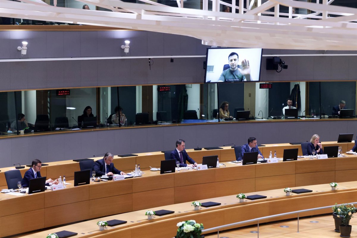 Durante el arranque de la reunión, los líderes europeos han conversado en videoconferencia con el presidente de Ucrania, Volodimir Zelenski, durante 20 minutos, en los que ha podido explicar la gravedad de la situación que atraviesa el país. Zelenski ha exigido a los lideres de la UE que inhabiliten a Rusia del mecanismo SWIFT, que facilita las transacciones financieras, y le embargue el comercio de petróleo y gas.