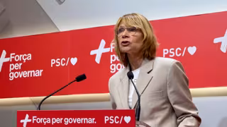 La viceprimera secretaria y portavoz del PSC, Lluïsa Moret, en una rueda de prensa desde la sede del partido - EUROPA PRESS