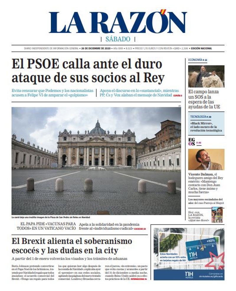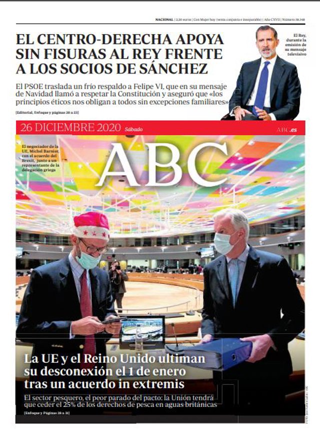 ABC: "El centro-derecha apoya sin fisuras al Rey frente a los socios de Sánchez"; "La UE y el Reino Unido ultiman su desconexión el 1 de enero tras un acuerdo in extremis".