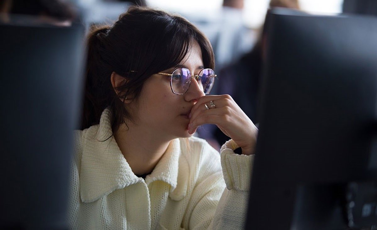 Archivo - Una estudiante usa un ordenador en la UPNA. - UPNA - Archivo