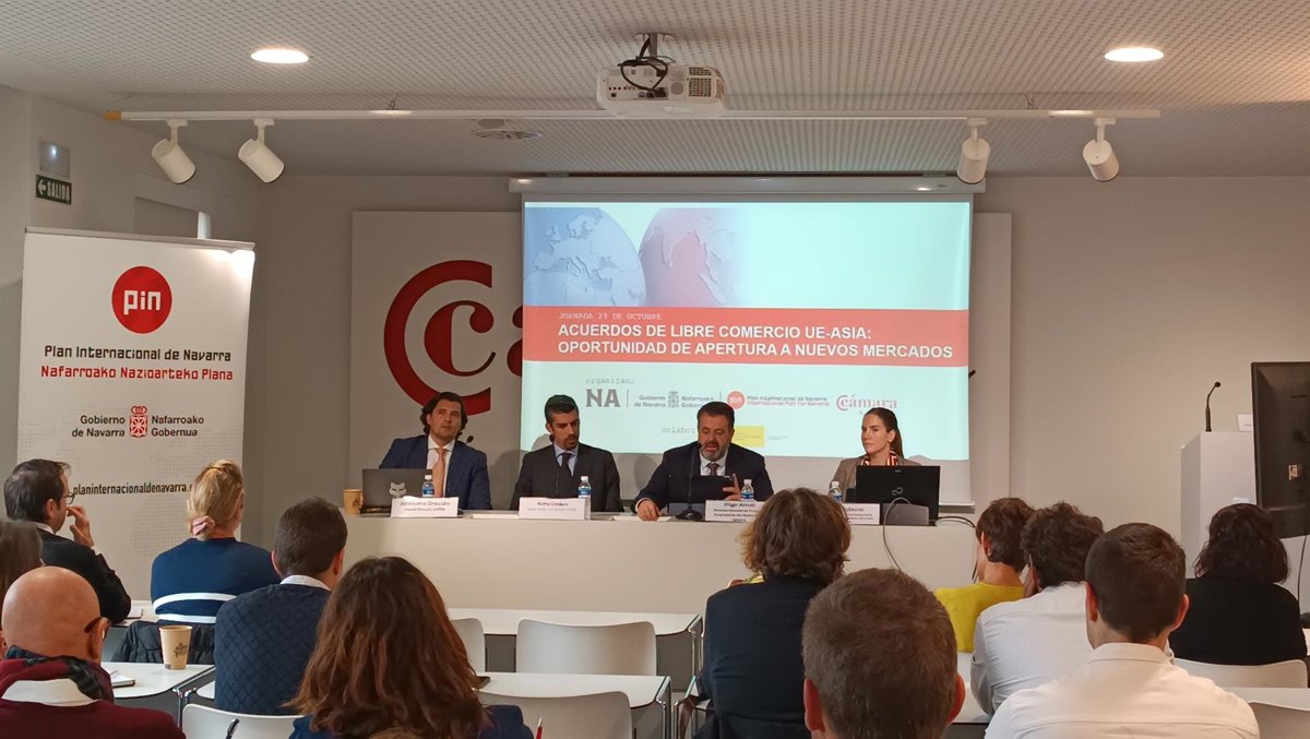 El departamento de Industria y Transición Ecológica y Digital Empresarial del Gobierno foral, a través del Plan Internacional de Navarra (PIN), ha apoyado la jornada 'Acuerdos de libre comercio UE-Asia: oportunidad de apertura a nuevos mercados', organizada por la Cámara de Comercio de Navarra y con la colaboración del Ministerio de Economía, Comercio y Empresa, que se ha celebrado este martes en Pamplona.