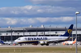 Archivo - FILED - 03 April 2021, Brandenburg, Schoenefeld: A Boeing 737-8AS of the airline Ryanair lands on the southern runway of Berlin Brandenburg Airport. Ryanair, Europe's largest low-cost airline, landed deep in the red in the past fiscal year due - Soeren Stache/dpa-Zentralbild/dp - Archivo