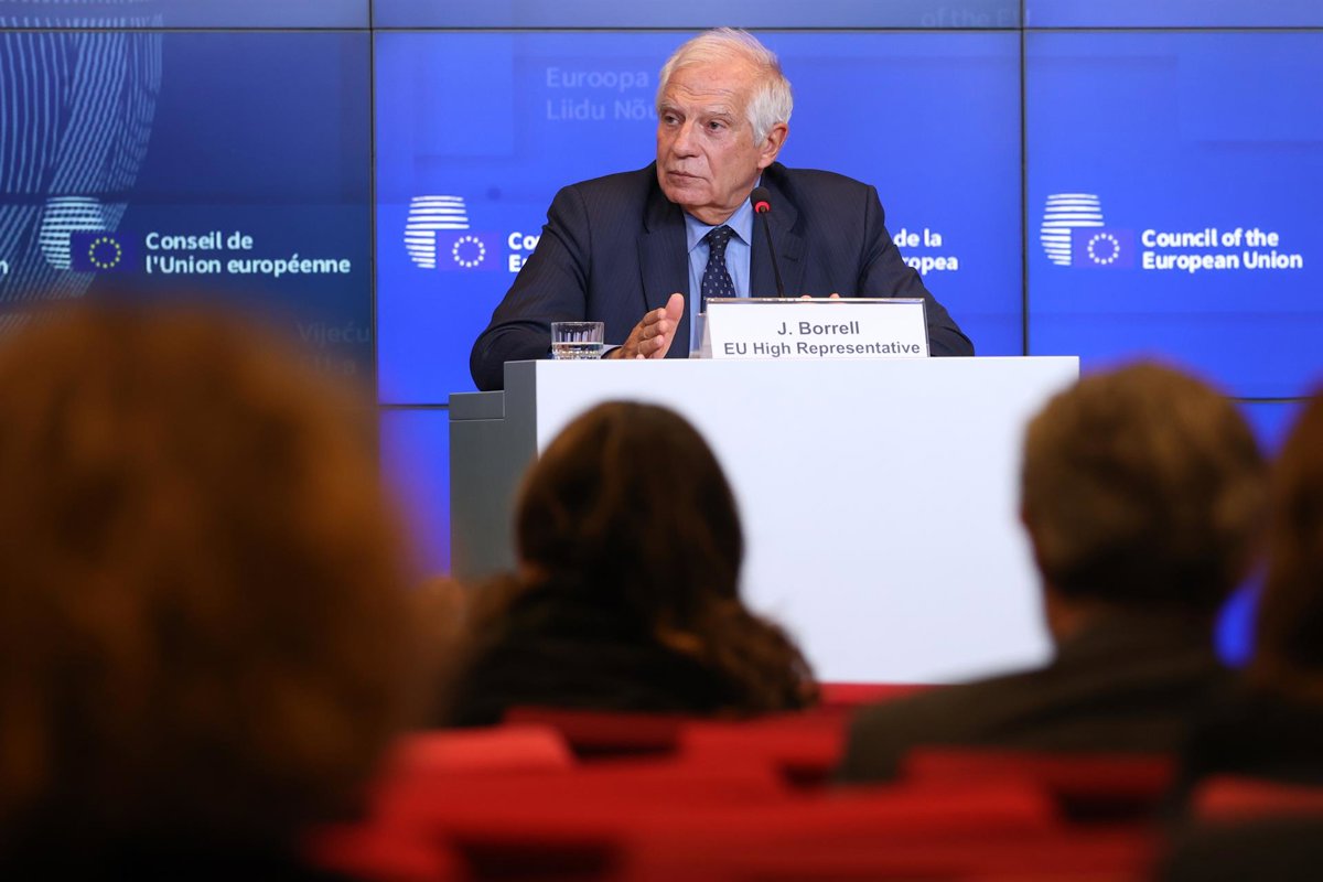 HANDOUT - 23 October 2023, Luxembourg: High Representative of the European Union for Foreign Affairs and Security Policy Josep Borrell speaks during a press conference after the EU Foreign Affairs Council meeting. Photo: -/European Council/dpa - ATTENTI - -/European Council/dpa