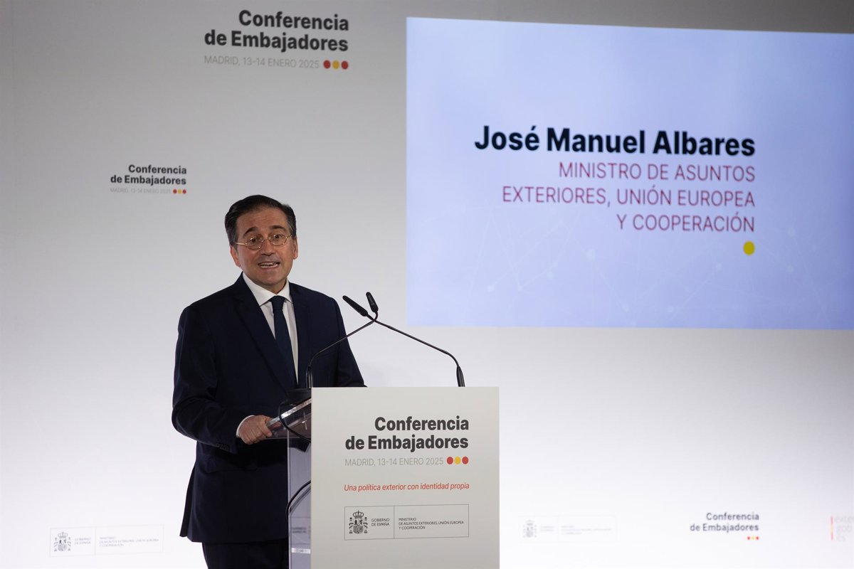 El ministro de Asuntos Exteriores, Unión Europea y Cooperación, José Manuel Albares, interviene durante la IX Conferencia de Embajadores, en el Ministerio de Asuntos Exteriores, Unión Europea y Cooperación, a 13 de enero de 2025, en Madrid (España). Hoy - Alejandro Martínez Vélez - Europa Press
