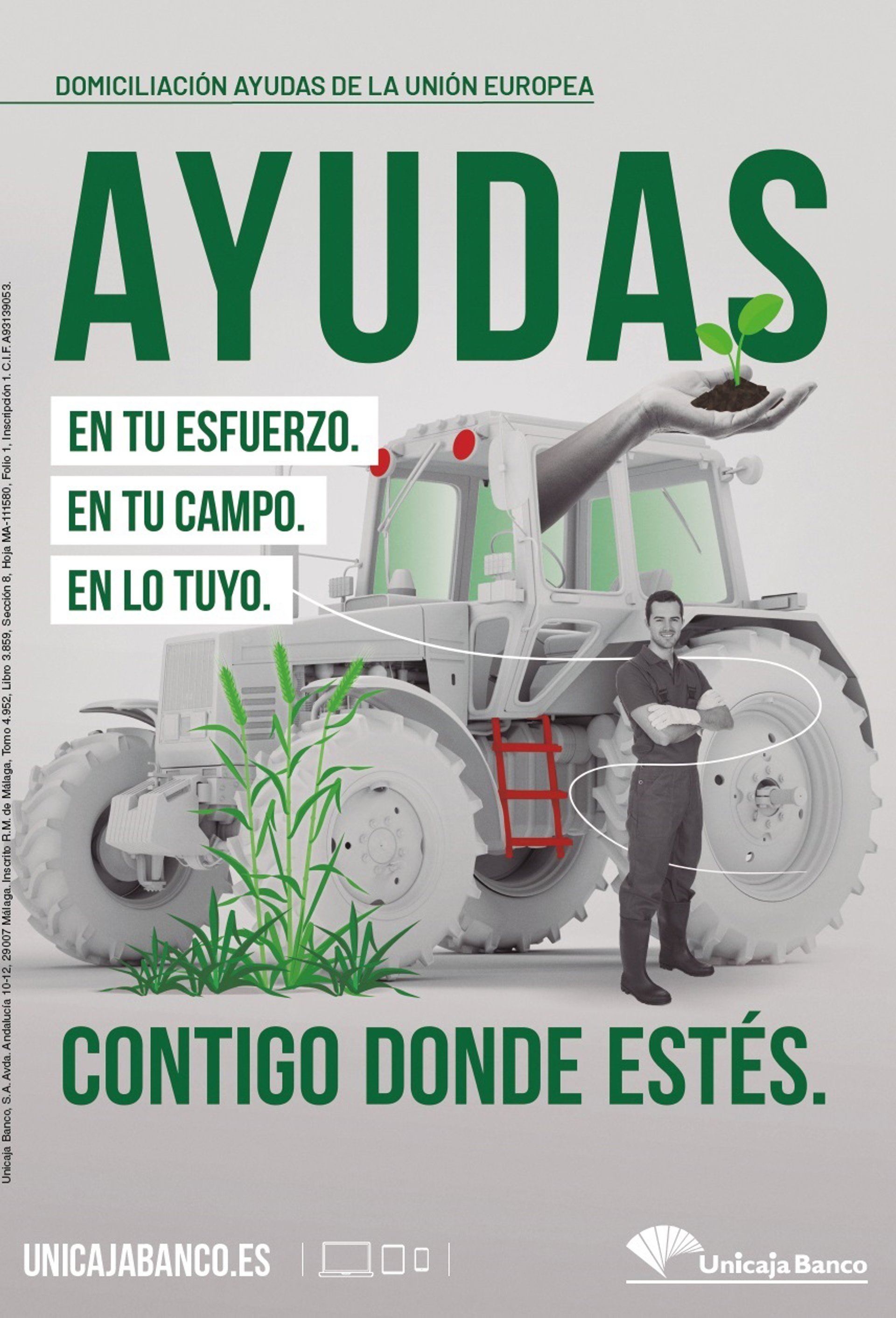La participación de Unicaja Banco en la campaña de ayudas agrarias de la PAC (Ayudas al Régimen de Pago Básico, Pago Verde, Jóvenes Agricultores, Ayudas Asociadas Agrícolas y Ganaderas y Medidas Agroambientales) se enmarca en el arraigado compromiso de apoyo al campo por parte de la entidad.